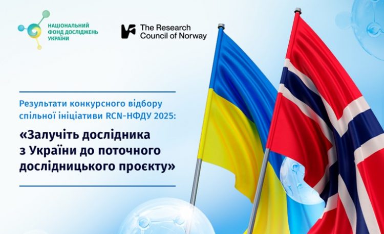 Національний фонд досліджень України оприлюднив результати конкурсного відбору партнерської ініціативи RCN–НФДУ 2025 «Залучіть дослідника з України до поточного дослідницького проєкту». За підсумками відбору визначено 11 успішних заявок, реалізацію яких здійснюватимуть 16 українських дослідників і дослідниць у партнерстві з науковцями з Норвегії; фінансування співпраці забезпечує Дослідницька рада Норвегії (RCN), а загальний обсяг підтримки становить понад 15 млн норвезьких крон.