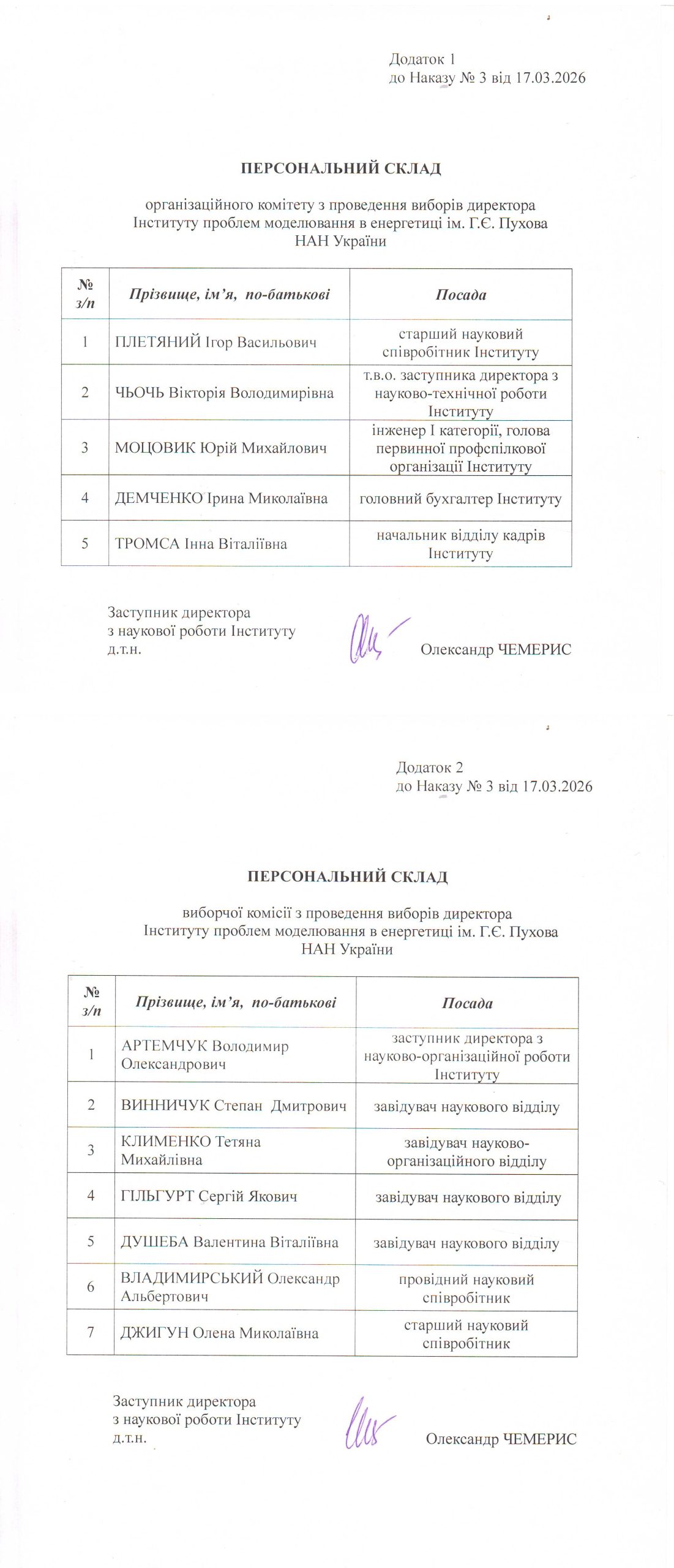 - Додатки до Наказу про організацію виборів директора Інституту проблем моделювання в енергетиці ім.Г.Є.Пухова НАН України